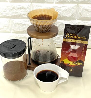 「ドリップルイボス」は、一般的なティーバッグタイプのルイボスティーとは異なり、コーヒーのようにハンドドリップで楽しむ、新発想のルイボスティー。茶葉を細かく粉砕し、コーヒー用のドリッパーで抽出できます。ノンカフェインなので、就寝前にも気にせずに、コーヒー代わりとしてお楽しみいただけます。