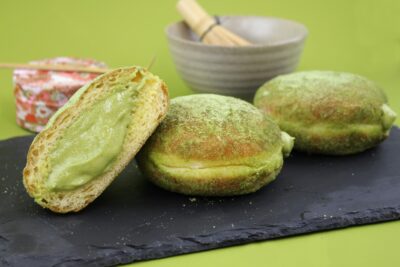 宇治抹茶を使用したなめらかな抹茶クリームとホイップクリームを合わせ、グリーンティーパウダーをまぶした生ドーナツにたっぷり詰め込みました。