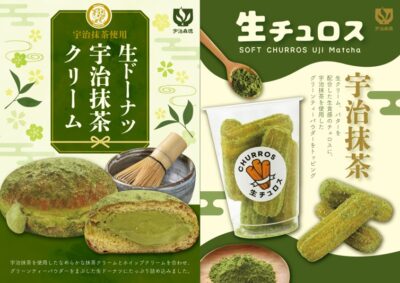 販売されるのは、宇治森徳の宇治抹茶を使用した「生ドーナツ(宇治抹茶クリーム)」と、「生チュロス(宇治抹茶)」。新緑を思わせる優しい色味にまろやかな風味は、どなたでもお楽しみいただける味わいです。