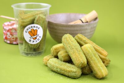 生クリームとバターを配合したもちっと生食感のチュロスに、宇治抹茶を使用したグリーンティーパウダーをトッピングしました。